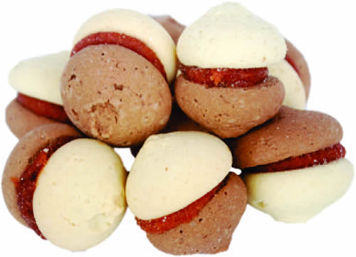 About half of the general production goes to receive filling, which varies between Guava, Chocolate, Banana Jam, Peanuts, Strawberry, Grape, Pineapple and other, which in the filling department earn a sweet and two cookies making the union, while the other party receives a chocolate icing that can be white chocolate or regular chocolate.